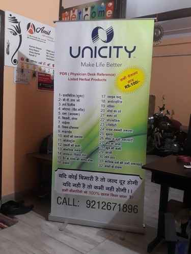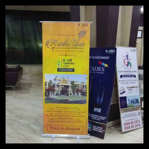 Specifications: Polypropylene is the major material used in manufacturing our roll-up stands. These are available with and without a banner as per your requirement. Star media flex and digital vinyl are the two only materials used to create the banners. These materials add an extra layer of crisp and vibrant visuals and offer a great look to the roll up stands.